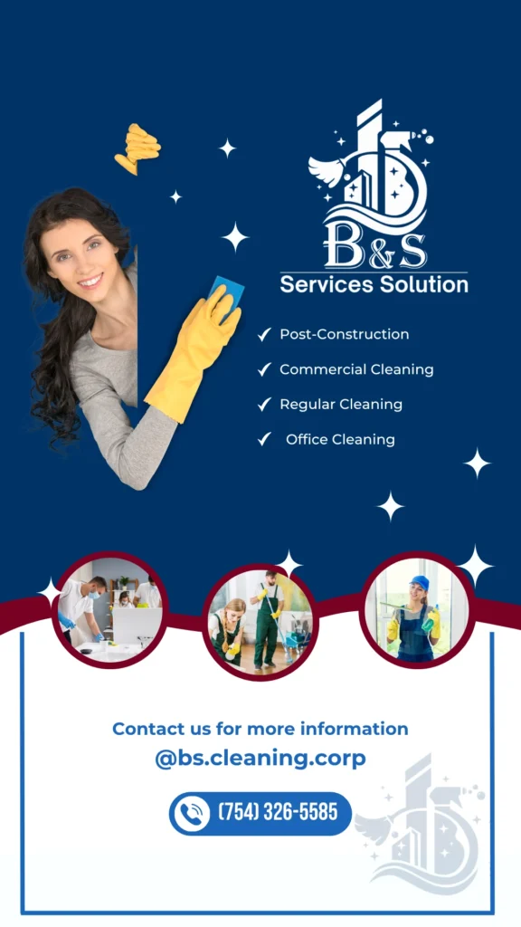 At B&S Services Solution, we believe a clean space fosters a clear mind and a welcoming environment. As a premier provider of Post-Construction, Commercial, and Residential Cleaning services across Deerfield Beach, Pompano Beach, Boca Raton, Delray, Boynton, West Palm Beach, Jupiter, Hobe Sound, Fort Lauderdale, and Miami Beach, we are dedicated to transforming spaces with unparalleled attention to detail and unwavering commitment to excellence.